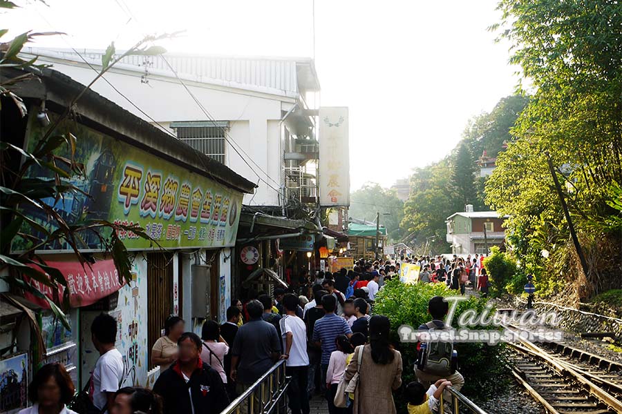 Pingxi Old Town was another venue bustling with activities, with shops lined up beside the railway tracks and visitors releasing their sky lanterns on them. Most of the shop sold delicious snacks and had long queues. It was so crowded that we could only walk slowly through on the narrow pathway beside the railway tracks.