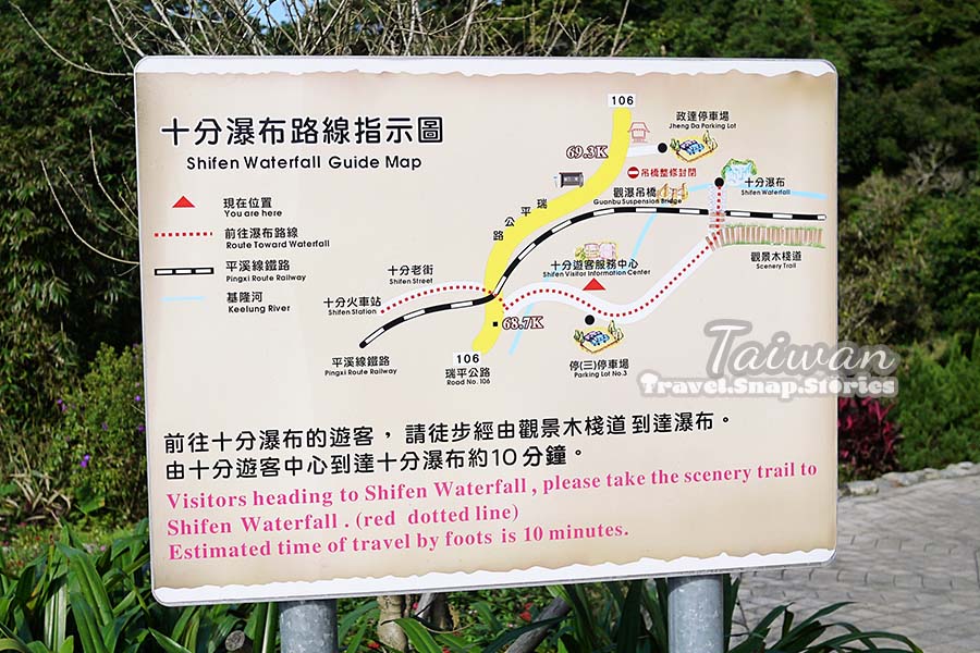 After about a 15-minute walk, we reached the Shifen Tourist Center, a big place where we could rest our feet and go for a toilet break. There was also a hot and cold water dispenser within the building so we made sure to top up our water bottles. There was a cafe and drinks sold but we prefer drinking water.