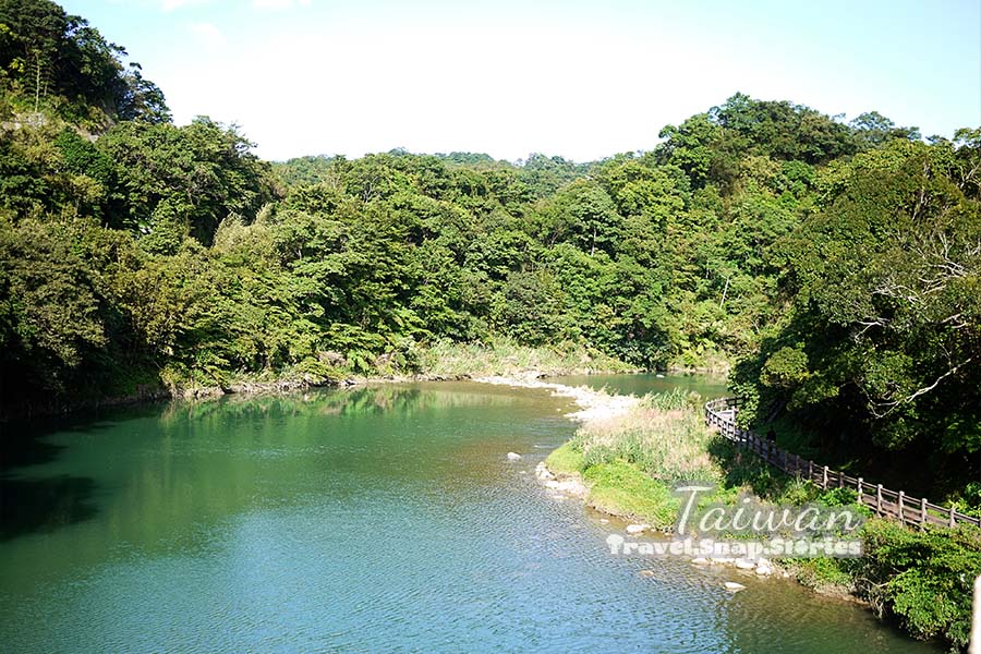 At the back of the center, there was a suspension bridge, , which used to be part of the journey towards Shifen Waterfall. The other end is now blocked but still, it was a nice experience to be walking on the hanging bridge and admiring the water flowing down below.