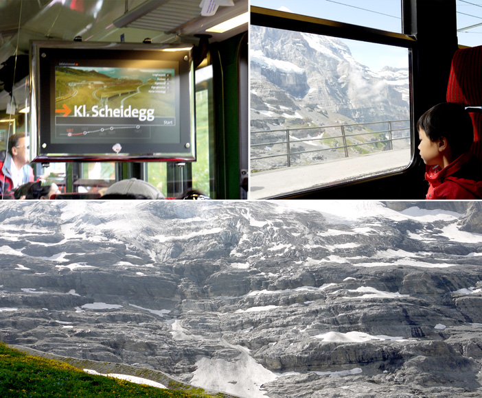 Even though we took the Brienz Rothorn railway yesterday, we still felt excited as we knew we would be climbing up to even greater heights this time with the Jungfraubahn. Furthermore, we would be passing by different types of sceneries, the former with vast greenery while this would climb past barren mountains, into tunnels deep into the mountains and ending on the snow-filled alps.
