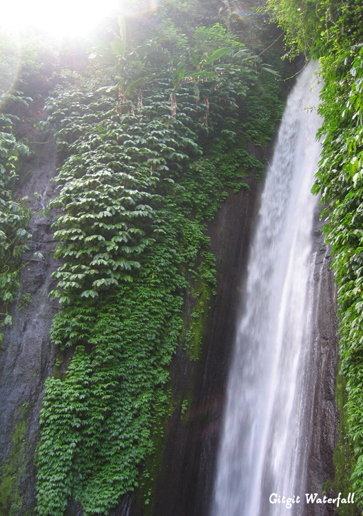 Gigit Waterfall is located in the northern part of Bali, about 70km from Denpasar. At a height of about 35 metres and in a plateau area, the force of the water was quite strong to me. With our limited camera capabilities, we could only take half of the waterfall while standing so close to it. This place took a bit walking to and there were several up and down steps to take through a forested area after we left the car.