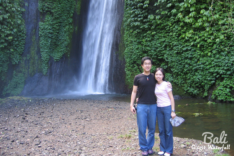 Do not be shocked…this was us just married in 2004. How time flies! ^_^ Anyway, the water was splashing hard behind us, so we were “rained on” but our guide manage to capture a nice shot. It became my favourite photograph of Bali.