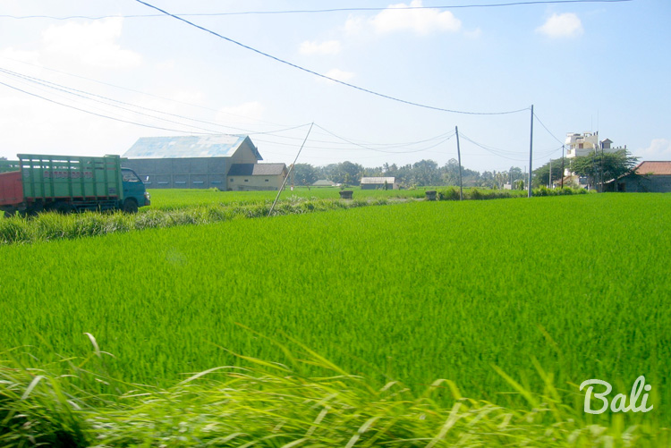 While in the vehicle going places, we passed through several seas of green rice fields too. Green fields and blue sky always make me happy.