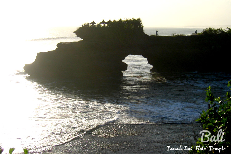 Standing at the grounds of Tanah Lot Temple, we could look across to where we were just now on the narrow cliff area. The whole place was great to photograph in the setting sun. This is why ‘Pura Batu Bolong’ actually means ‘hole in the stone’.