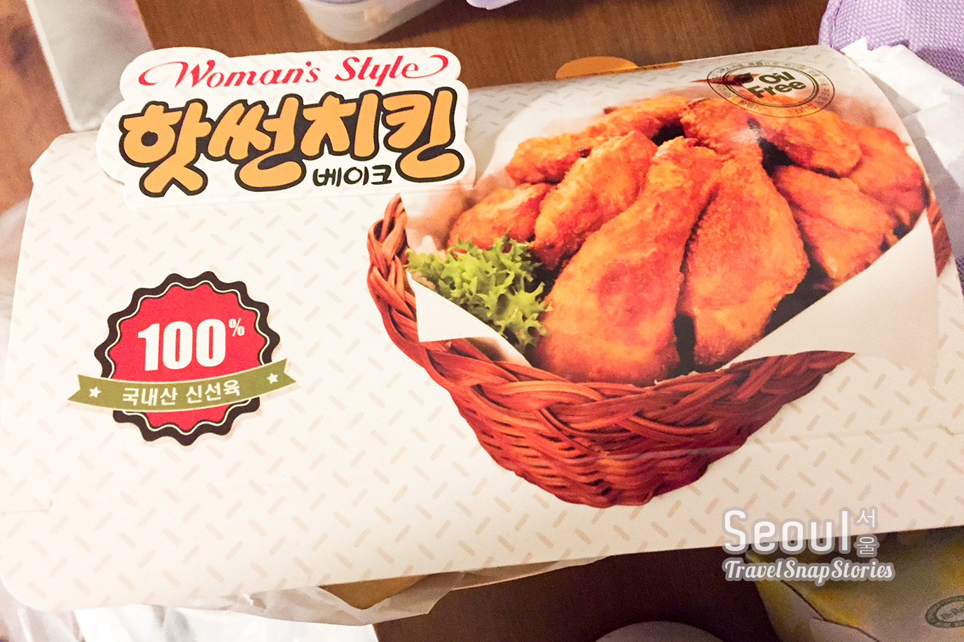 We returned back to Roinhome to rest and Vin spotted a Korean Fried Chicken Restaurant opposite! Thus, he went over to “Hotsun“, to purchase a box of it back. (Despite eating Ginseng Chicken Soup earlier, he felt hungry again). It was the healthier version (baked) and our first try of fried chicken in Korea. Indeed, the taste was quite special and not what we are used to. Skin was rather crispy too. The beer was his attempt at doing the “Fried Chicken with Beer” trend which Koreans embrace. He got it from a convenience store nearby. ^_^