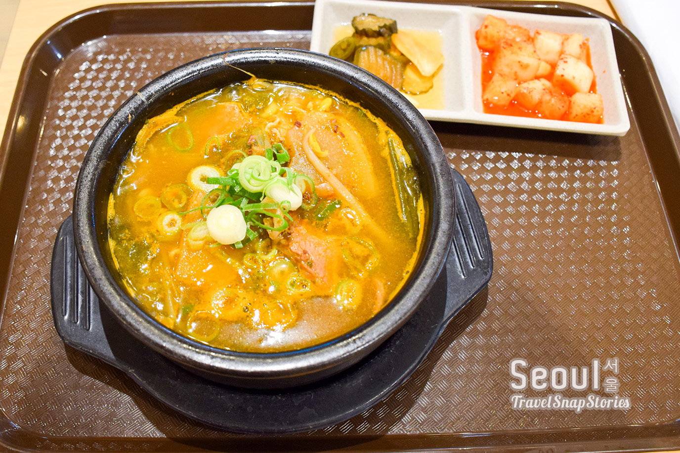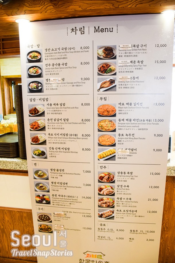We compared the three restaurants we saw and went back to the first one, “Gilmokgib Restaurant”. The only suitable thing I saw was “Beef Brisket with Rice” for me. Vin had wanted to try some pork dish and order grilled mackerel for Dar but they were not available! Thus, we ended up ordering “Beef Brisket with rice” for all of us, adding on a seafood pancake for Dar. Fortunately, I found the Beef Soup quite delicious and like the “Ginseng Chicken Soup” we ate yesterday night, the rice is found inside the soup with the beef.