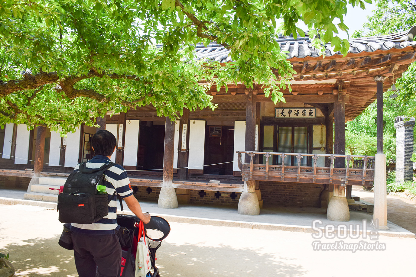 We stepped inside and for sure, it looked like the Baek In-Je’s house we visited yesterday in Bukchon Hanok area. The floors were elevated and there were many rooms and a large courtyard.