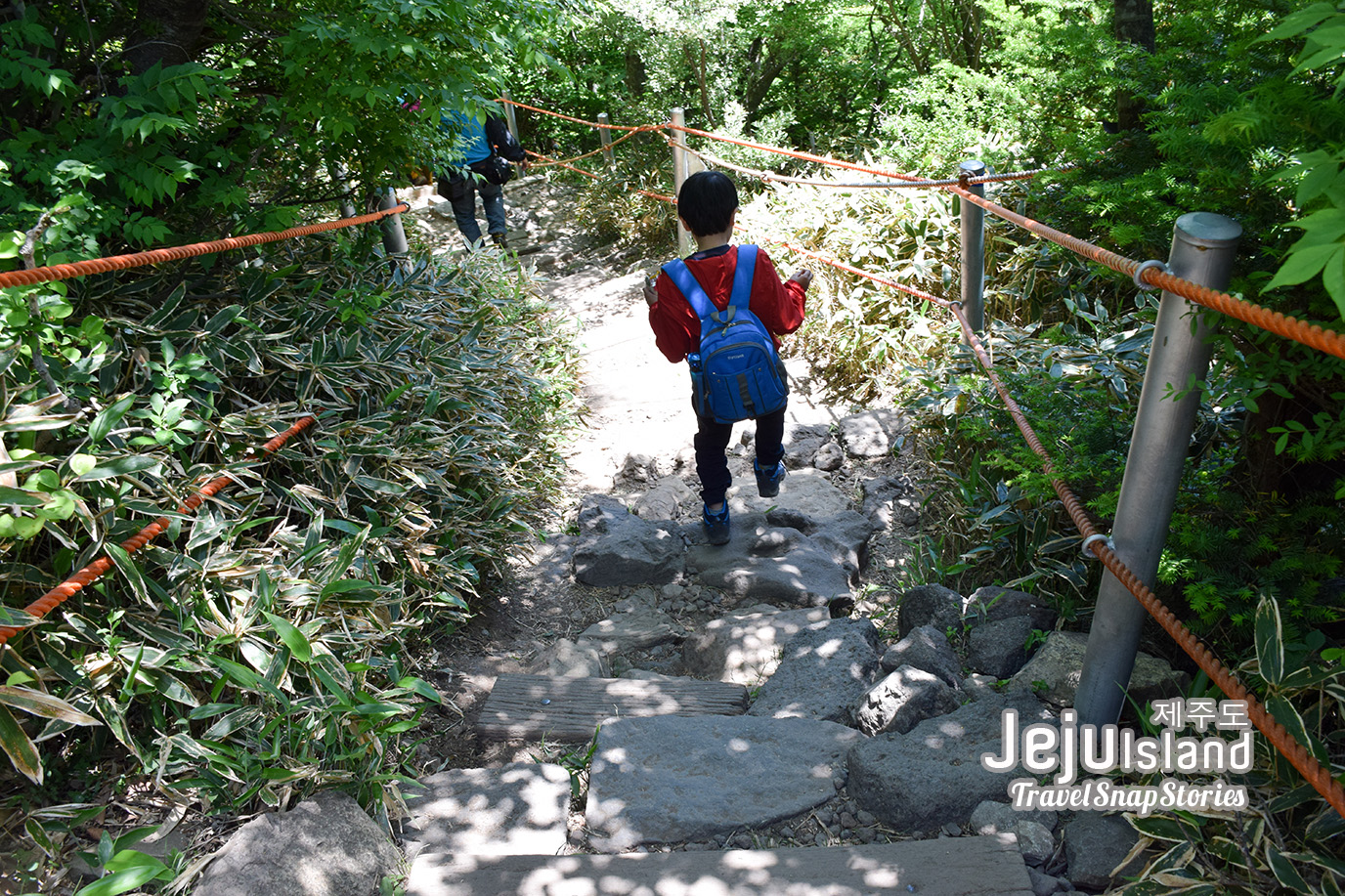 It was much faster going down than up because we had already seen those stuff earlier. Thus, concentrating on just moving downwards, we reached the exit in 30 minutes! Dar was still energetic and happy to have hike through this trail of Mt. Hallasan. He did not show signs of tiredness at all. To him, it was a nice and fun experience stepping on the rocks to ascend or descend!