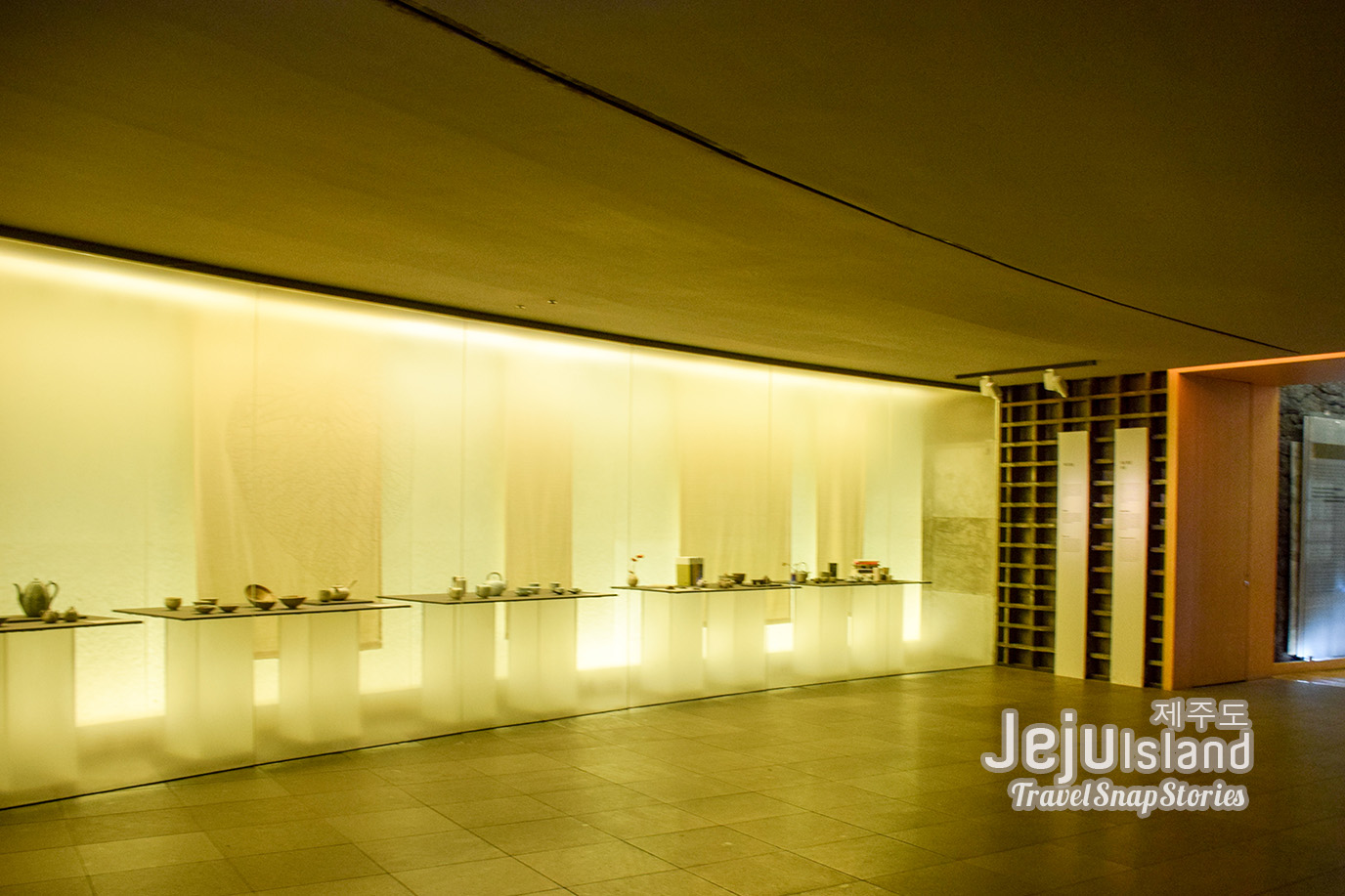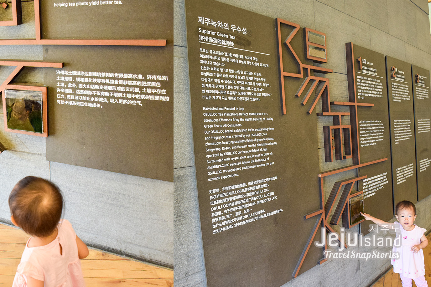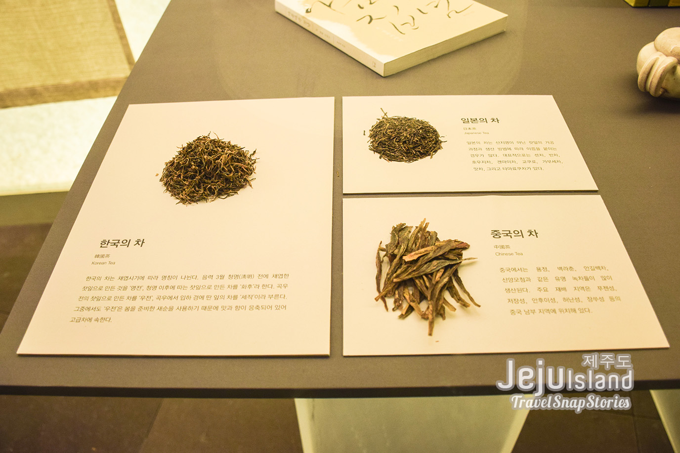 After parking our car, we had to walk up a slope to reached the entrance. I was surprised to find only a large room as the “museum”. I do like the clean display and lighting though and we could read some English information about the origins of tea in Jeju Island.