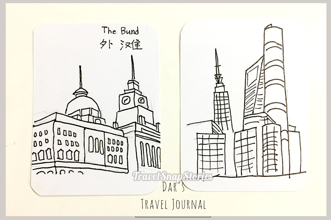 As mentioned in my Yuyuan Garden post, I thought of letting Dar learn and note down what we saw in our China trip. I inserted these acid-free cards into his travel album after we came back. As we strolled along, I remembered it and took out one card for him to draw the Shanghai Skyscrapers. (I would be showing the rest of his drawings in upcoming posts too)