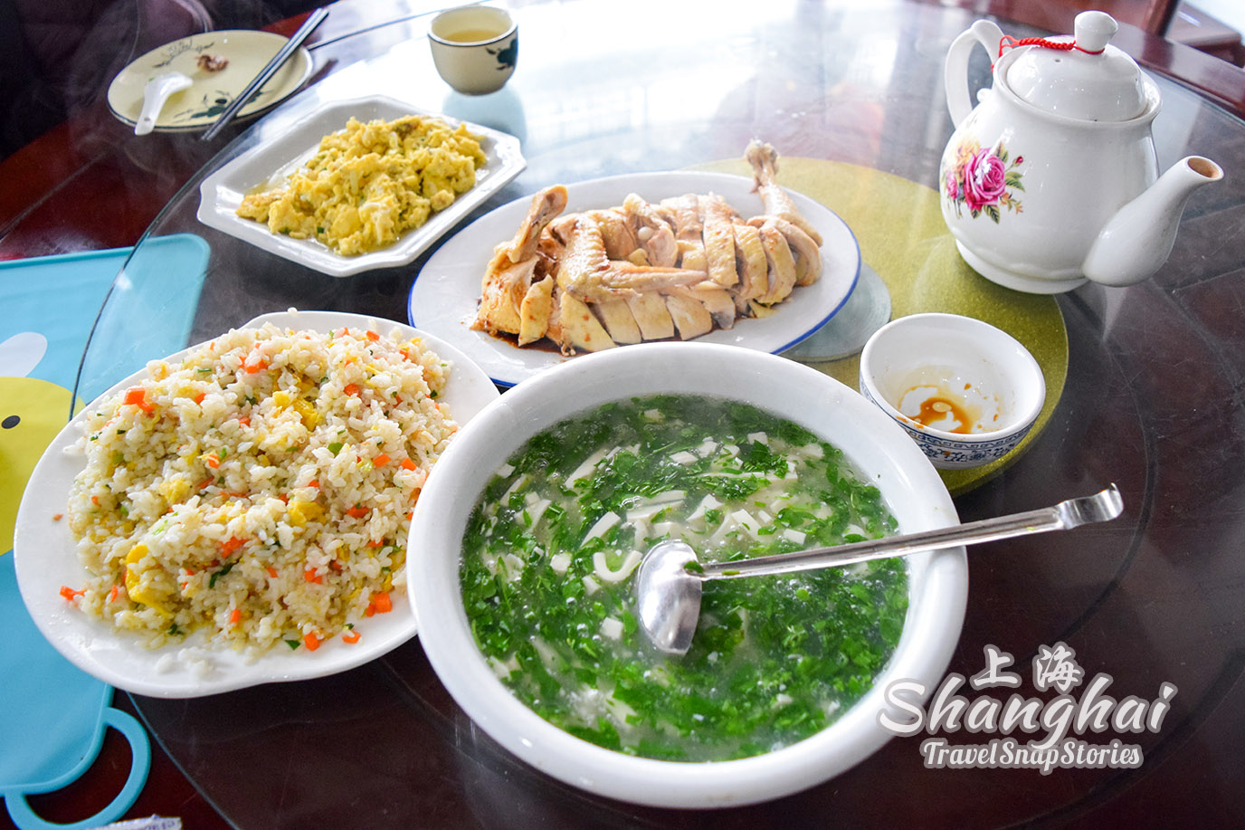 These were what we ordered: Their house specialty – Steamed Chicken 本地白切鸡 | Shepard’s Purse Veggie Tofu Soup 荠菜豆腐羹| Fried Egg 银鱼炒蛋 |Fried Rice 炒饭. A Pot of Tea was given free I think.