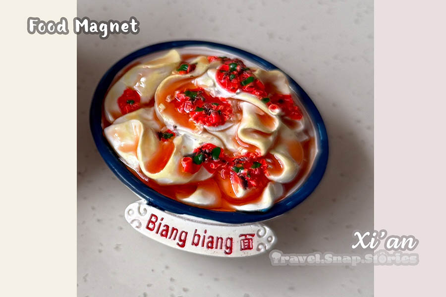 For trip souvenirs, we took a family photo with the seal at Qinling Wildlife Park and a family photo with the Terracotta Army backdrop in the museum. As usual, we would buy fridge magnets (one of Xi’an and one of Chengdu) for each region we visit. We also bought local food magnets (found Biang Biang noodle magnet) from the souvenir shop beside Muslim street called “大唐秘境”.