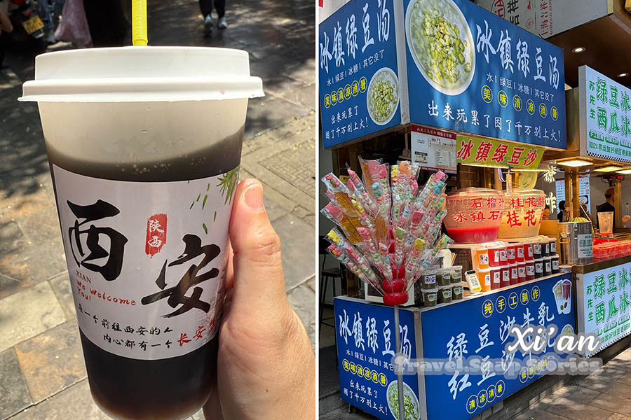 When we started strolling through and see multiple similar kind of food stalls, I lost interest. Since we were there, I decided that we must still try the mutton satay 羊肉串 and mutton bun 羊肉肉夹馍 which are local Xi’an Muslim food. Surprisingly, Ling wants to try the mutton satay and she enjoyed it. Dar tried the 羊肉肉夹馍 instead and remarked that it was tasty. I tried the plum juice which was sold everywhere and taste was just so-so, kinda sour.
