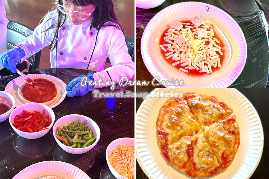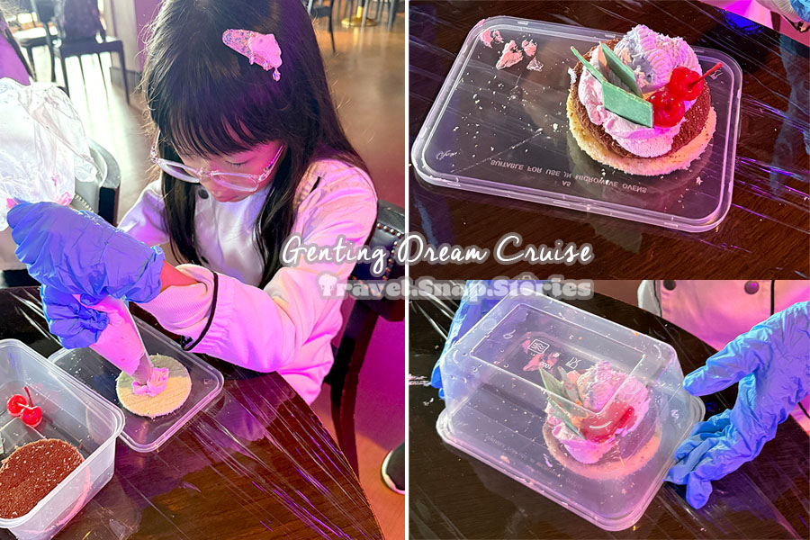 There were also a series of paid activities for both children and adults. We participated in a food preparation activity for Ling, which cost S$25 and included sushi and pizza making, as well as cake decoration. She had to dress up like a small chef and she loves decorating her cake with the whipped cream pipe provided. We missed the sushi making as we were stuck at lunch but was still given a box of sushi to eat. She wanted to make a “cat face” with the ham (Can you see it?) but it turned out combined.