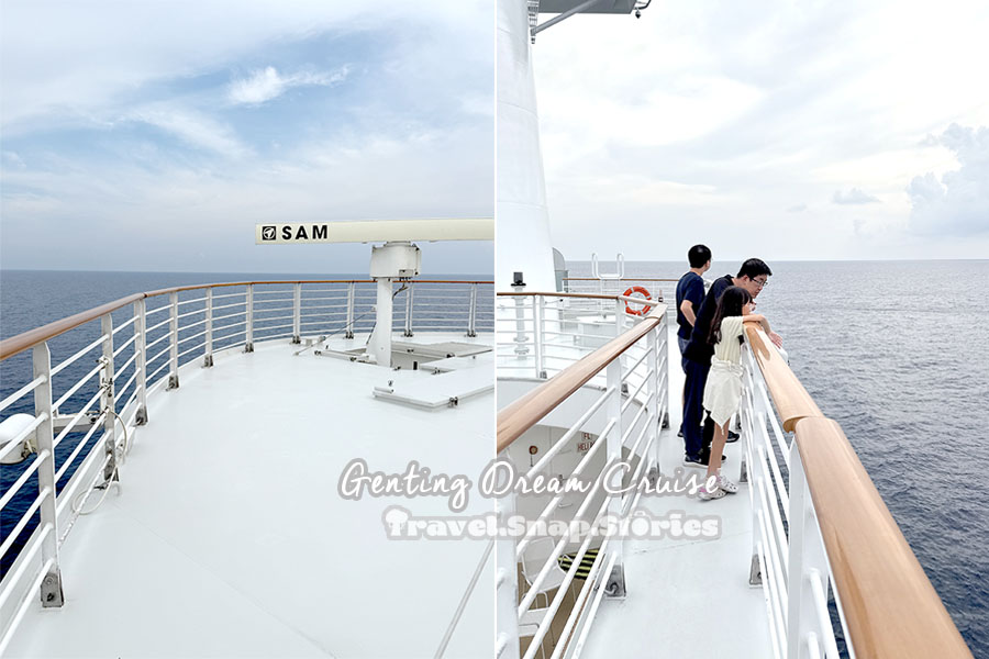 Our family also joined the Helipad tour (SGD$15 per person, or SGD$20 per pair). It was a nice experience to enter the ‘restricted’ area, and we had some lovely views of the sea and the front of the ship. Except for photo-taking and enjoying the sea breeze, it was quite boring actually. If you need, there was a professional photographer to help take a family photo which you could get later at a price. We just asked the staff who led us here to take a family photo for us with our phone.